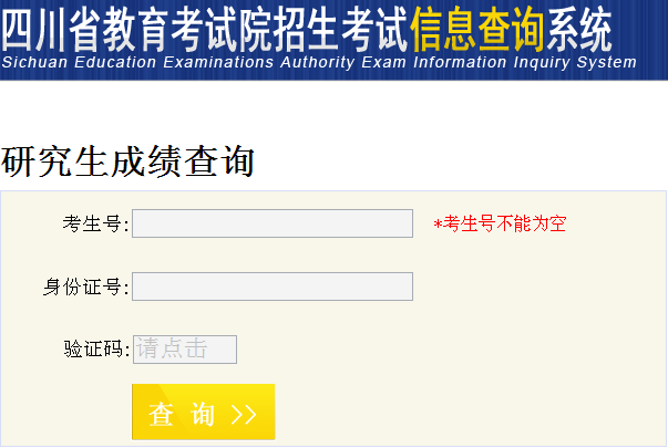 2013年四川省研究考试成绩查询入口已开通,考生可点击下列图片进入研究生考试成绩查询: