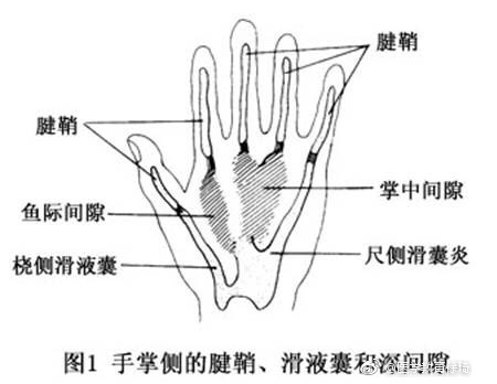 拇指与小指的腱鞘分别与桡侧、尺侧滑液囊相沟通,因此拇指和小指的腱鞘炎可蔓延到桡侧、尺侧滑液囊。两滑液囊在腕部有时经一小孔互相沟通,感染可能互相传播。示指、中指与无名指的腿鞘不与滑液囊相沟通,感染常局限在各自的键鞘内,但可扩散到手掌深部间隙。