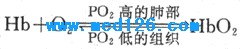 1.反应快、可逆、不需酶的催化、受PO2的影响。当血液流经PO2高的肺部时,Hb与 O2结合,形成HbO2;当血液流经PO2低的组织时,HbO2迅速解离,释放O2,成为去氧Hb: