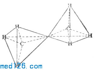 其它烷烃的构造与乙烷、丙烷相似。除甲烷外,烷烃分子中的各个碳原子上所连的四个原子或原子团不尽相同,所以其键角稍有变化,但仍接近于109°28′,因为这样的空间排布,能量最低,体系最稳定。这些分子中碳原子与碳原子连结成链状,其分子的形状是一系列共用一个顶点的四面体。如乙烷(图11-1)