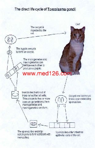 1. Cat or other felines捕食时食入cyst或pseudocyst, 或者通过污染了Oocyst的食物或水而感染。