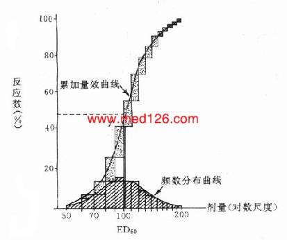 图2-2 质反应的频数分布曲线和累加量效曲线