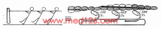 肌动蛋白+肌凝蛋白-ATP→肌动肌凝蛋白+ADP+P1P1为释放出来的能量(图2-4)。