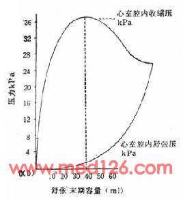 图2-6 心室收缩力与舒张压积的关系
