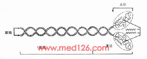 图2-2 肌凝蛋白分子结构模式图