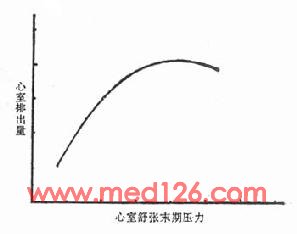图2-5 心室排出量与心室灌注压的关系