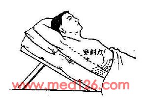 (2)检查穿刺针是否通畅,与穿刺针连结的乳胶管先用血管钳夹住,准备穿刺。