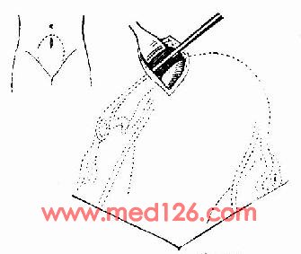 (一)切口 产后手术时,可在下腹正中低于宫底约2~3cm处作一长2~3cm切口,在人流的同时或在月经后手术,可在耻骨联合上方2~3cm片段和一长约3cm切口。切腹膜时注意勿损伤膀胱和肠管。