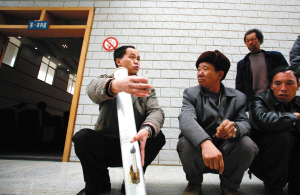 昨天,案件在会泽县法院开审,村民守在门口等结果 记者龙宇丹/摄