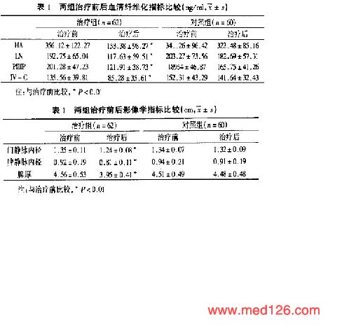 | 用法用量 | 对照组采用一般护肝治疗,予护肝宁片口服,3次/d,每次5片;治疗组在此基础上加用扶正化瘀胶囊,3次/d,每次3粒。两组均以3个月为1个疗程。 |
