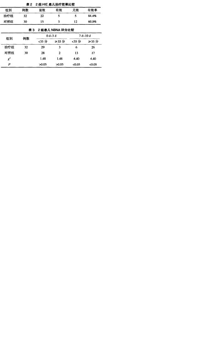 | 疗效评价标准 | 入院7d如意识转清,呼吸平稳,肌张力恢复正常,原始反射可引出,惊厥明显减轻或停止为显效;意识转清,呼吸平稳,肌张力有所改善,原始反射部分引出,惊厥减轻为有效;各项指标均无明显好转为无效。 |