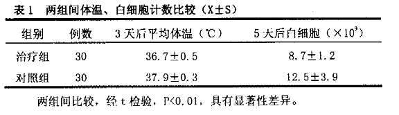 | 疗效评价标准 | 均按《实用内科学》。并于治疗前后观察体温复查血常规及胸片等临床症状。 |