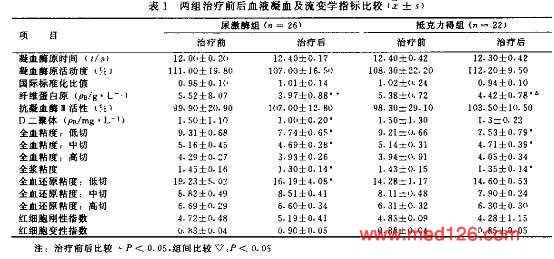 | 用法用量 | 尿激酶组24例,予尿激酶25万单位/d,加入生理盐水100ml,快速静滴,在3Omin内滴完,10d/疗程;抵克力得,0.25g/d,2Od/疗程。 |