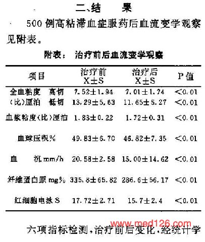 | 疗效评价标准 | 主要根据血流变学测定,结合临床症状。显效:症状消失,血流变各项不正常指标全部降为正常;有效:症状好转,血流变不正常指标接近正常或较治疗前明显好转;无效:症状改善不明显,各项不正常指标不变或加重。 |