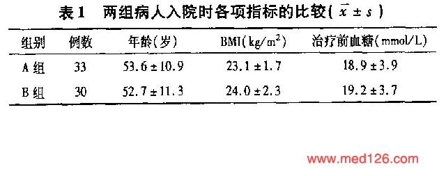 | 用法用量 | A组(对照组)采用24小时持续静脉滴注加餐前皮下注射胰岛素。B组(治疗组)采用胰岛素泵(瑞士海创泵)24小时持续皮下输注胰岛素。两组患者胰岛素初始剂量均由医生根据血糖水平、并发症情况以及体质等情况综合估算确定。A组血糖≥13.9mmol/L时应用0.9%NS加胰岛素静脉注射;血糖<13.9mmol/L时用5%Glu或5%GluNS加胰岛素静脉滴注。B组第1天将胰岛素总量50%以基础量输注,50%以餐前大剂量方式输注,根据血糖情况增减剂量。两组均按常规给予补液及对症、支持治疗。 |