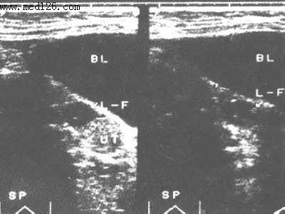 1前位子宫纵切超声显像图