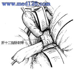 | ⑴切口 | ⑵显露肝十二指肠韧带 |