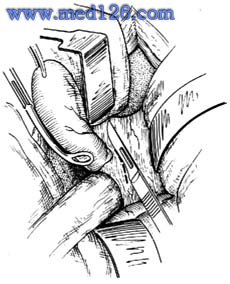 如能清楚辨认局部解剖关系,可先于胆囊三角区将胆囊动脉结扎切断后,再处理胆囊管。这样手术野干净、出血少,可以放心牵拉胆囊管,使扭曲盘旋状的胆囊管伸直,容易认清和胆总管的关系。如胆囊动脉没有被切断、结扎,在牵拉胆囊时,很可能撕破或拉断胆囊动脉,引起大出血。
