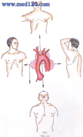 切口:根据动脉瘤的部位、大小、形态与性质的不同,采用不同的切口(图1)。