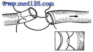 套入缝合的血管必须是正常的,且有足够的长度,以供套接。此外,套入缝合的两条血管的外径必须相仿,不能差异太大。