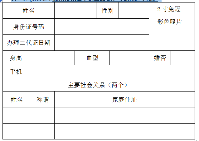 4、为保证新生顺利入学,需迁移户口的新生请按下表要求认真填写基本情况,并贴上二寸彩照一张。(不迁户口者,无需填写下表)