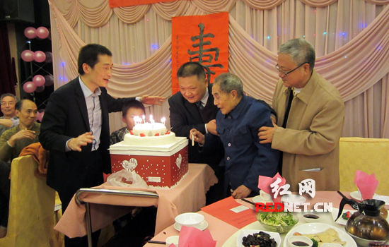 着装朴素、面容慈祥,在热闹非凡的晚宴中,他被宾客包围着,却不时的探头出来打望,然后对你微笑,如此精神矍铄的老人一点儿都看不出已经百岁了。今晚,湖南中医老寿星夏禹甸先生正享受着他的学生为他操办的百岁寿宴,享受着亲朋的祝福。