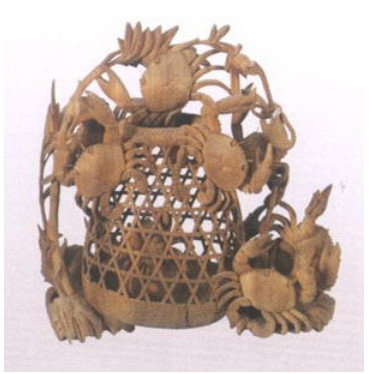 [p=27, null, left]当他们抓到螃蟹时,会把螃蟹丢到一个特殊的竹篓里。这种竹篓的外型相当奇特,有点像酒瓶,开口处窄窄的,只能容一只手进去:竹篓的肚子却宽大的多,可以装很多的螃蟹。[p=27, null, left]