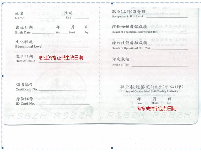 举例二:考生小明领取该证书之后,证书遗失,根据遗失补发流程申请办理证书补发。于2013年11月15日为其补发一本(一级/高级技师)职业资格证书,则补发证书上的考核成绩审定通过时间与原证书上的时间保持一致,补发证书的发证日期是2013年11月15日,并加盖“补发”字样。