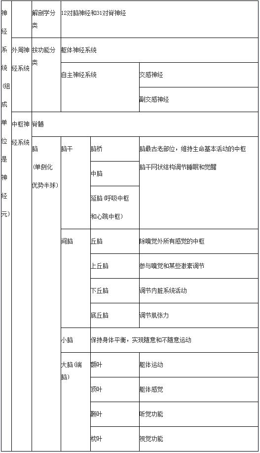 表4-4神经系统的构造及功能