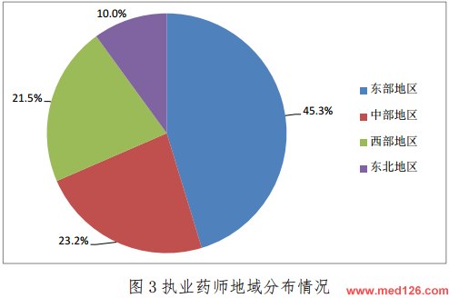 执业药师按区域分布情况:东部地区162990人,中部地区83505人,西部地区77439人,东北地区36020人医学全.在.线.提供. www.lindalemus.com,分别占注册总数45.3%、23.2%、21.5%、10.0%。
