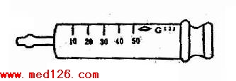 用物:治疗盘内备治疗碗,胃管(婴幼儿用硅胶管),50ml注洗器(图15-9),纱布,止血钳,弯盘,润滑油,棉签,水罐内盛洗胃液,盛水桶,必要时备压舌板,开口器,牙垫等。