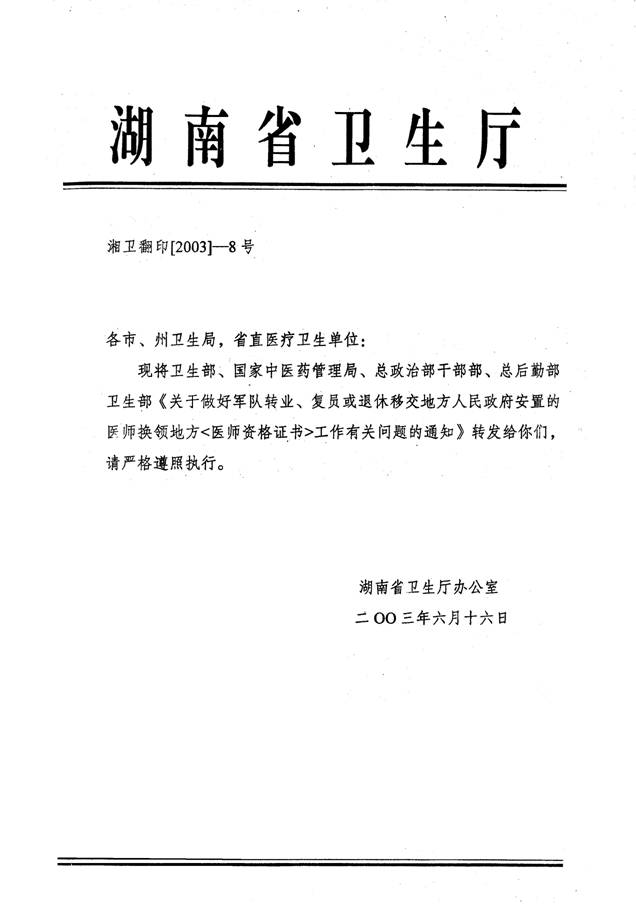 湖南军队转地方医师换证文件/军队医师换领地方医师资格证书申请表