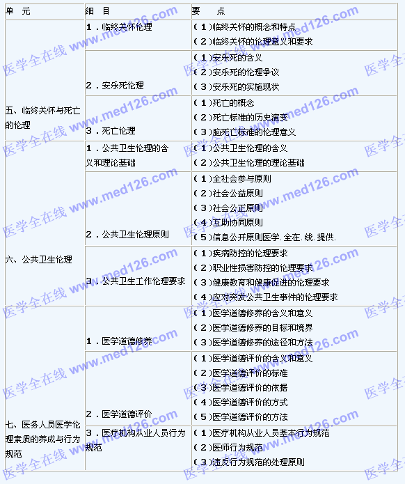 > 正文:2013执业助理医师考试大纲(医学人文综合)-医学伦理学