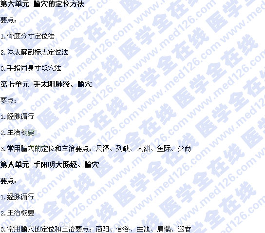 3.常用腧穴的定位和主治要点:少泽、后溪、养老、天宗、听宫