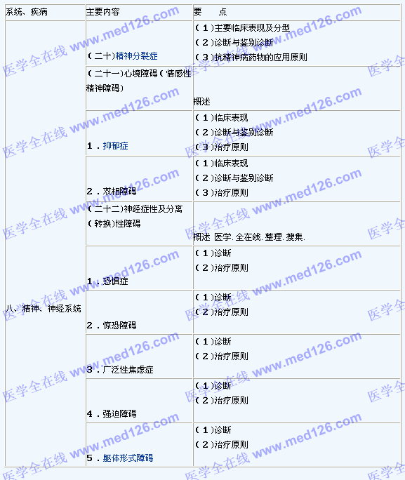 2014年临床执业助理医师考试大纲(专业综合)-精神、神经系统