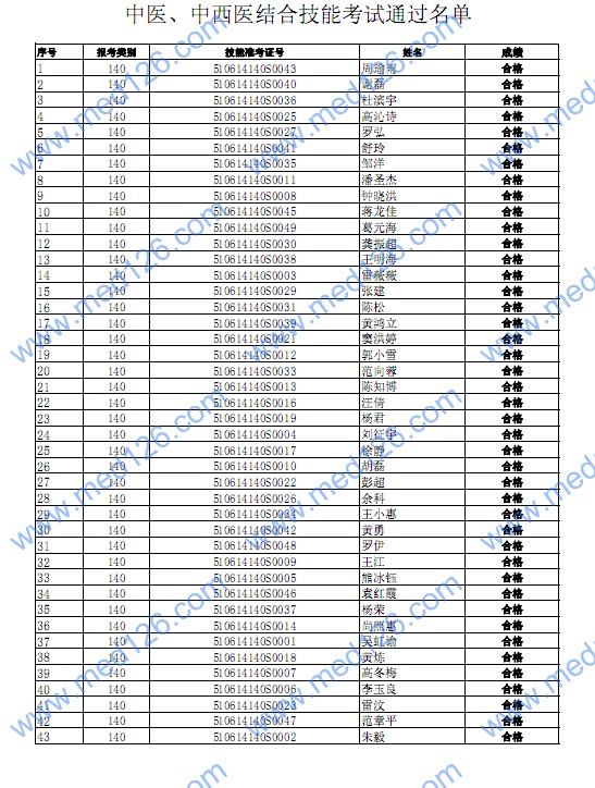 2014年度乐山市开云综合体育在线 实践技能成绩(中医、中西医)