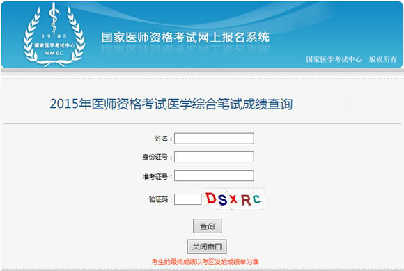 国家医学考试网通知2015年开云综合体育在线 综合笔试查分入口已开通,请考生点击下方图片进入查分系统。