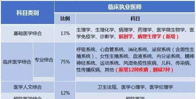 变化的部分:基础科目增加了两个难度很大的科目:解剖学和病理生理学,尤其是病理生理学,难度大,挂科率很高。专业综合增加疾病12种,删减疾病7种。