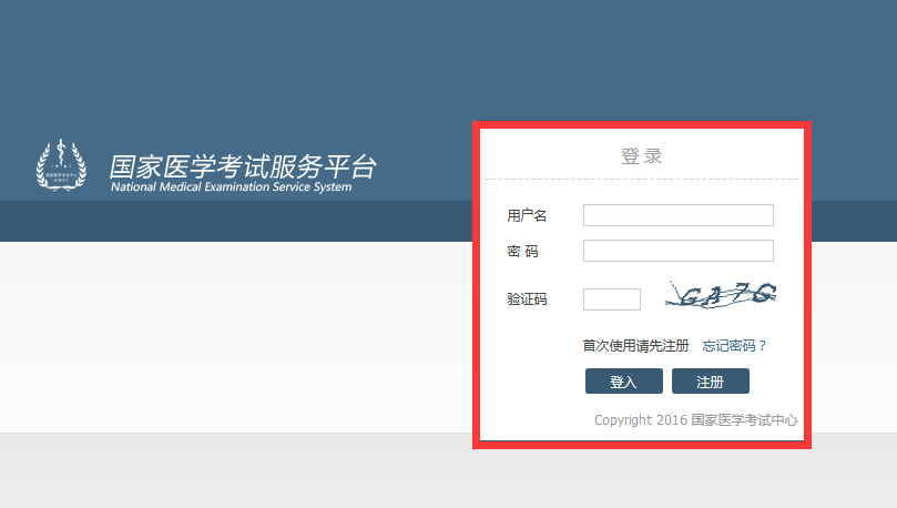 2.输入用户名、密码等信息后进入【国家医学考试服务系统】。