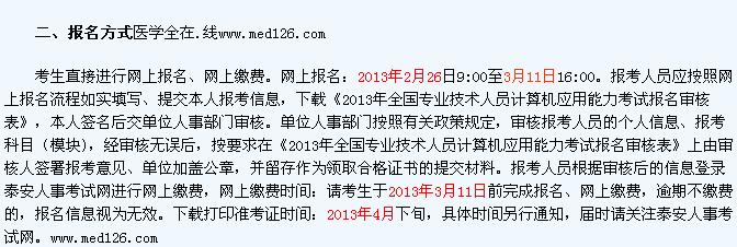 (一)2013年参加全国专业技术人员计算机应用能力考试的人员医学.全在线www.lindalemus.com,须按照《2013版全国专业技术人员计算机应用能力考试科目(模块)代码表》(见附件)所列类别要求进行报名考试。