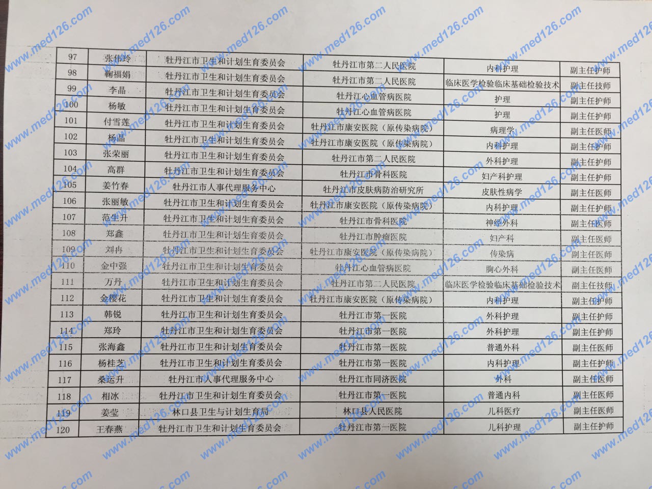 2015年度牡丹江卫生系统高级职称评审通过名单公示:市直二
