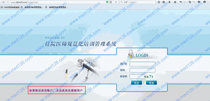 1、 在浏览器地址栏输入: http:// gzgp.yiboshi.com/ 进入贵州省住院医师规范化培训信息管理平台。
